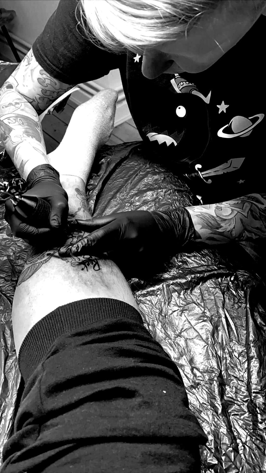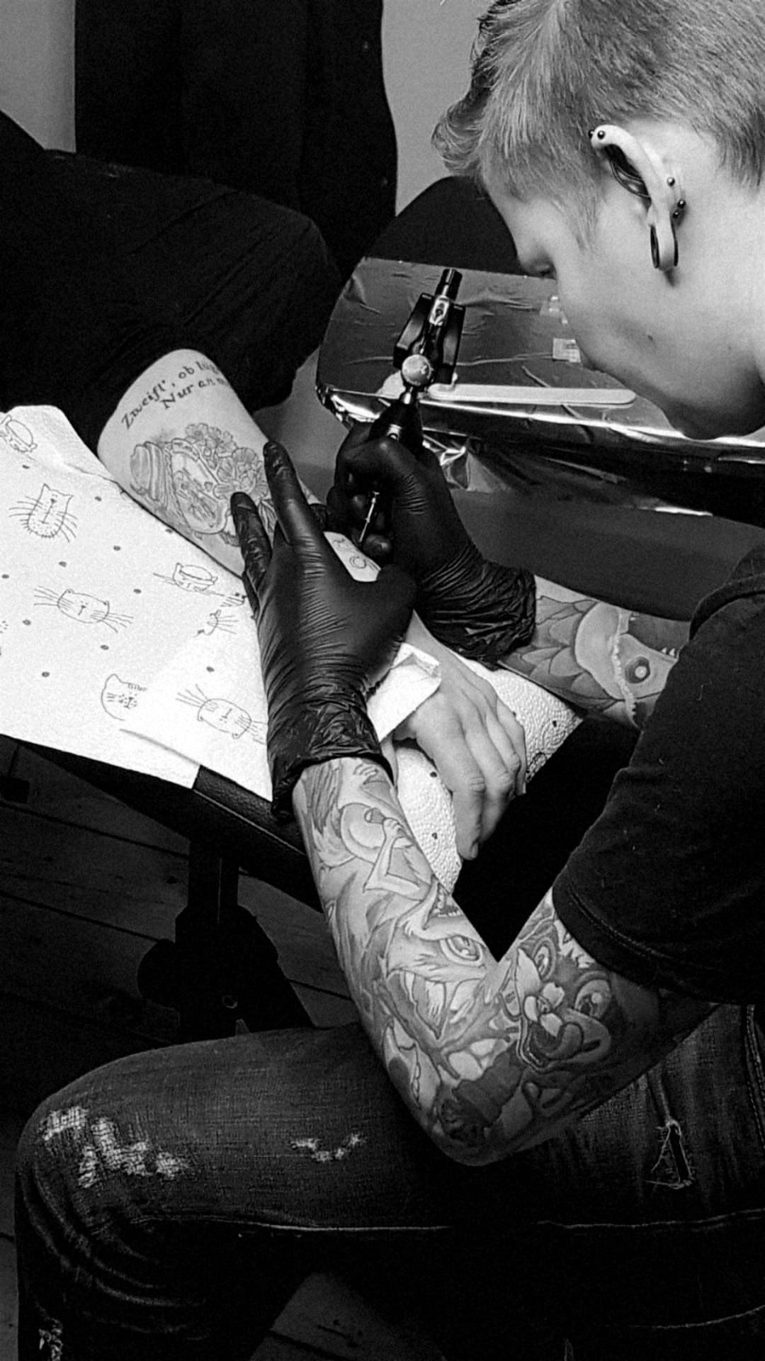 Das Tätowieren habe ich 2017 in einem Studio in Hamburg St.Georg gelernt, B!STICHT gibt es seit 2020, seit 2021 mit eigenem Studio in Hamburg Wansdsbek.